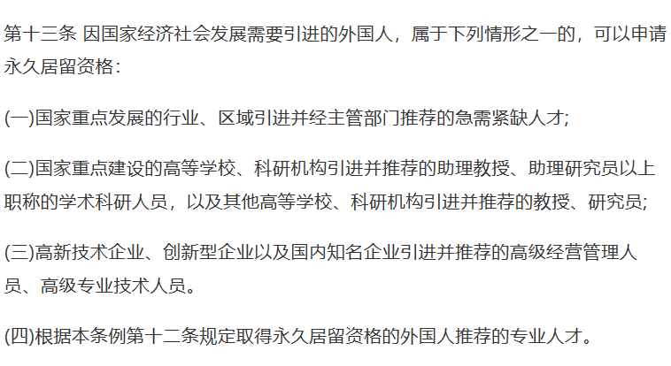 根据《条例》,外国人获得中国的永久居留权,大概有五个途径。